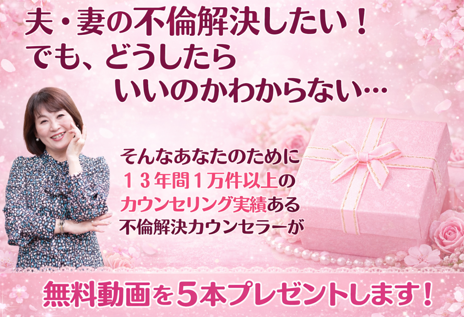 これまでカウンセラーとして13年間で1万件以上のカウンセリングをしている。パートナーに不倫をされ未来に希望を描けず、不安で仕方ない人たちを夫婦円満へと導いている。
